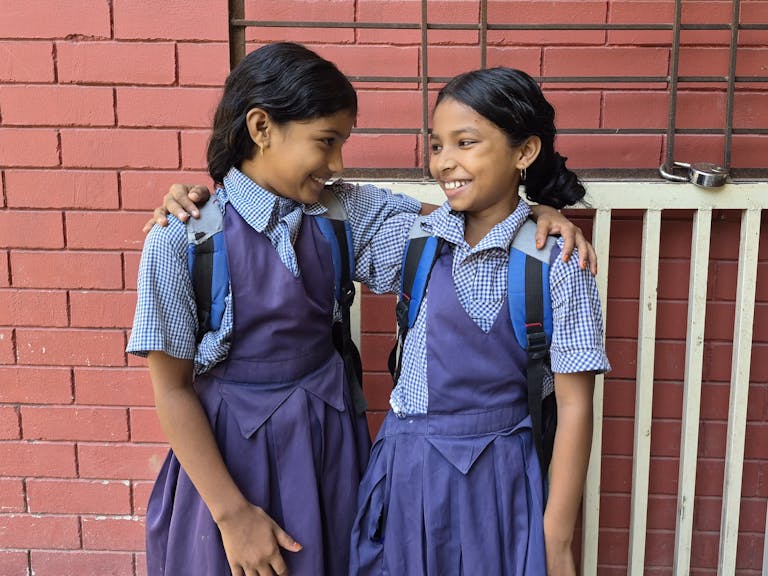 Sumaiya (left) is grateful for her best friend Adrita “who helps me study at school!”