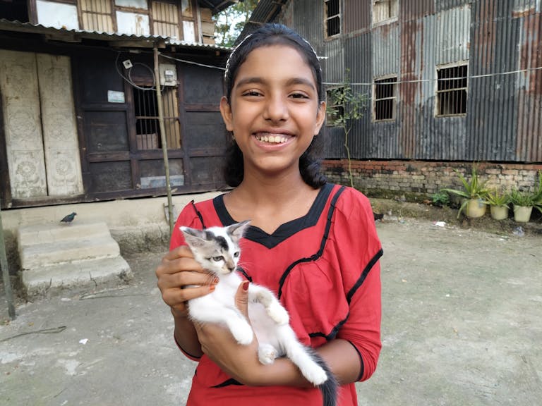 Saramoni loves animals and is grateful for her pet cat, Mini, who she found alone on the roadside. Now Mini is part of her family!
