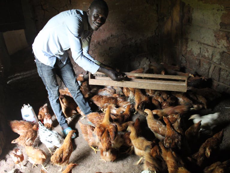 Teenager Isaac says he’s thankful for how someone like you helped provide chickens and “trained my family members on enterprise selection, and my parents selected poultry, and started raising 150 chickens! I now help feed chickens after school.”